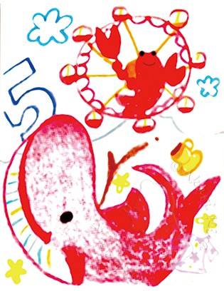 モチーフ:クジラとザリガニ技法:クレヨン・CG(企画葉書のデザイン)